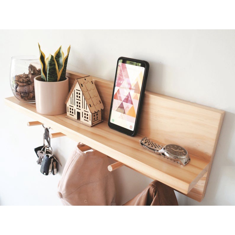 - Phía dưới kệ treo tường có 5 móc giúp treo khóa , treo quần áo, ô , mũ . túi xách và các vật dụng khác trong gia đình