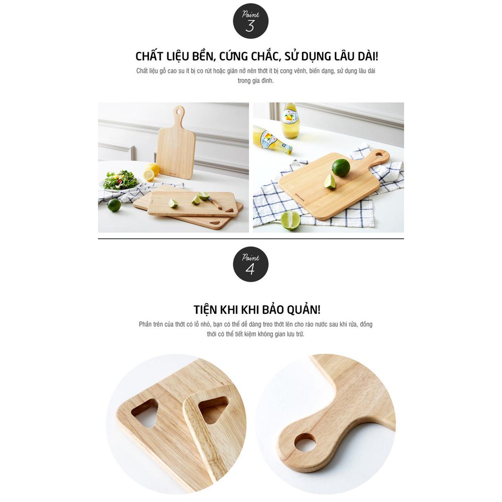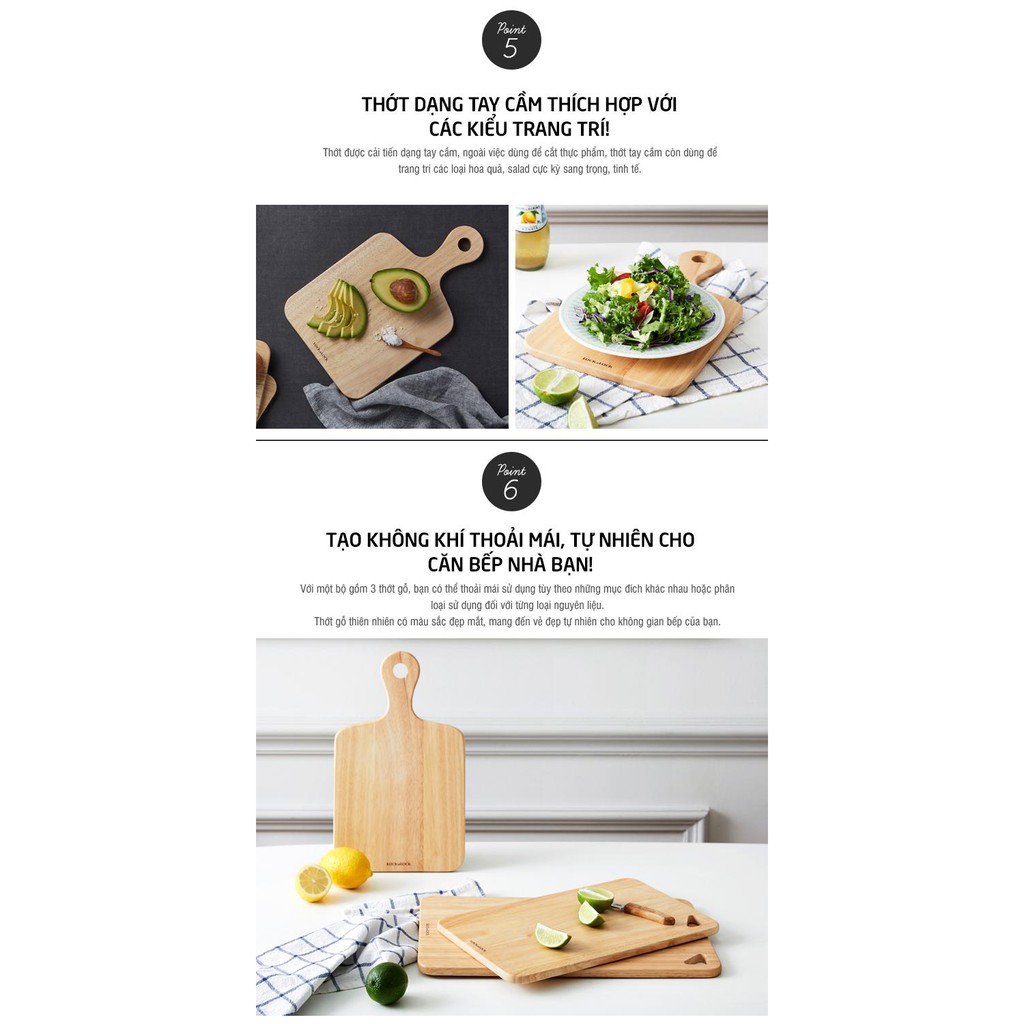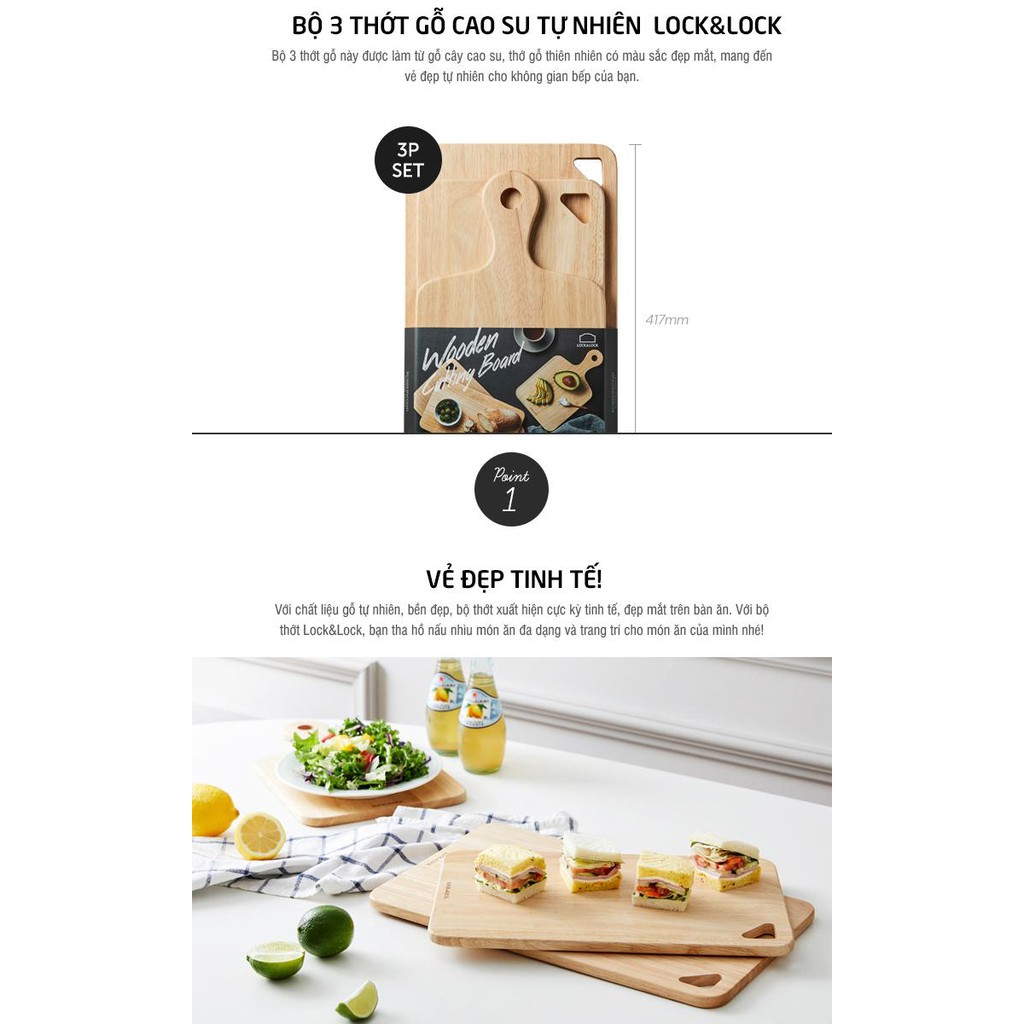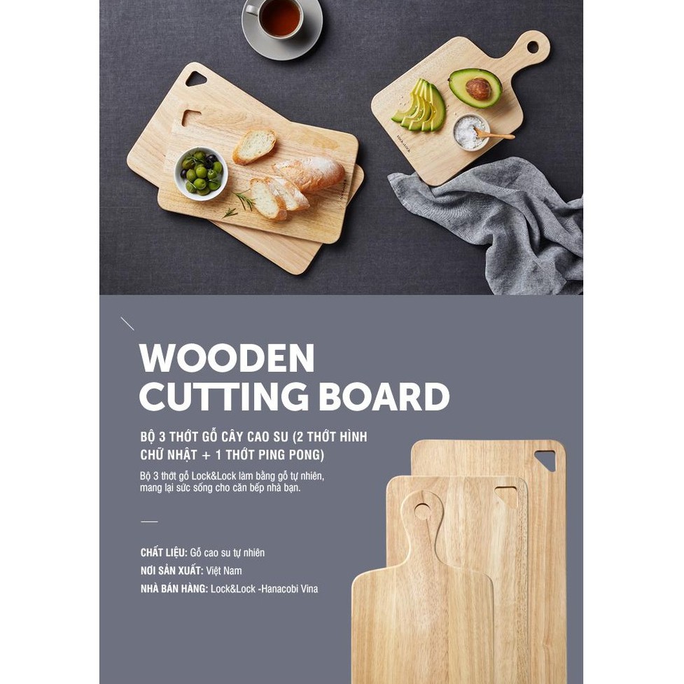 Bộ 2, bộ 3 Thớt Gỗ Cây Cao Su Lock&Lock LWC001S2 LWC001S3--------------------