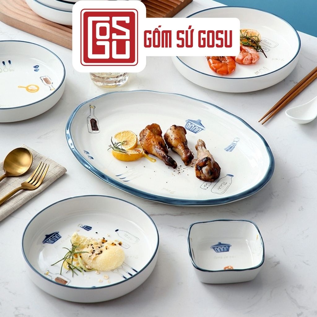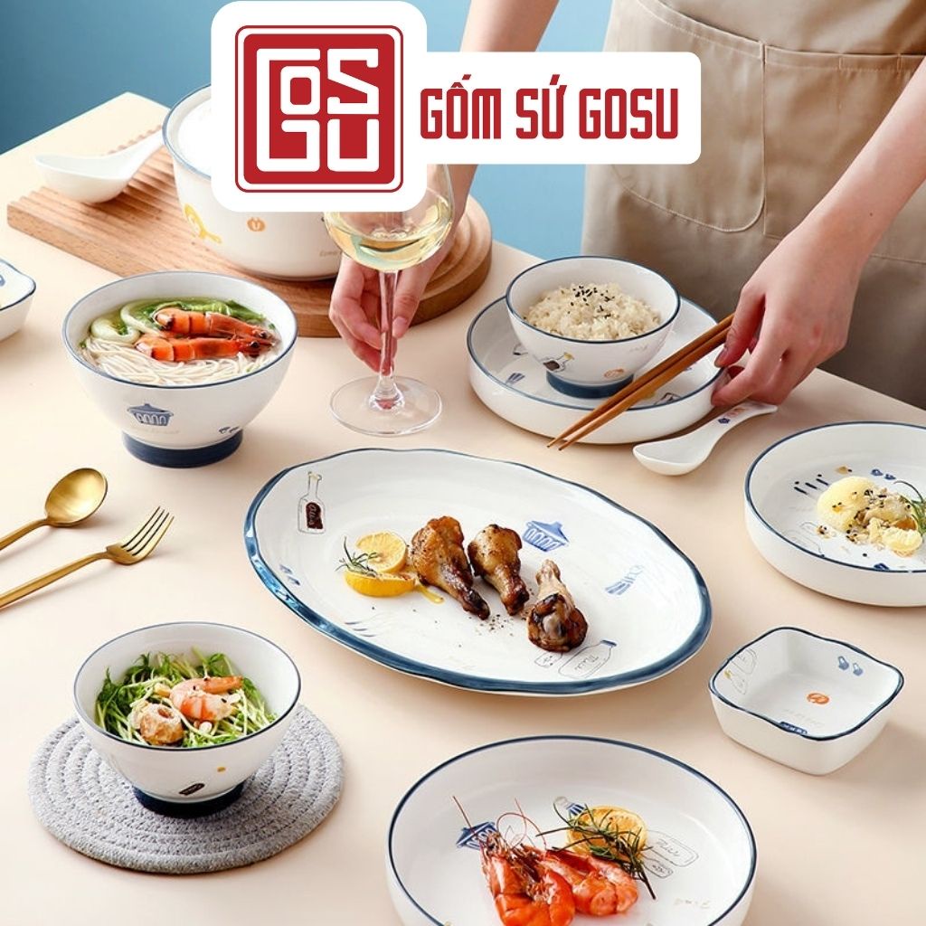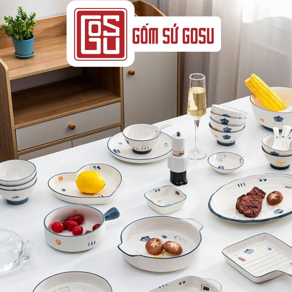 Bộ Bát Đĩa Decor Chén Dĩa Sứ Ăn Cơm Họa Tiết Dễ Thương Phong Cách Bắc Âu