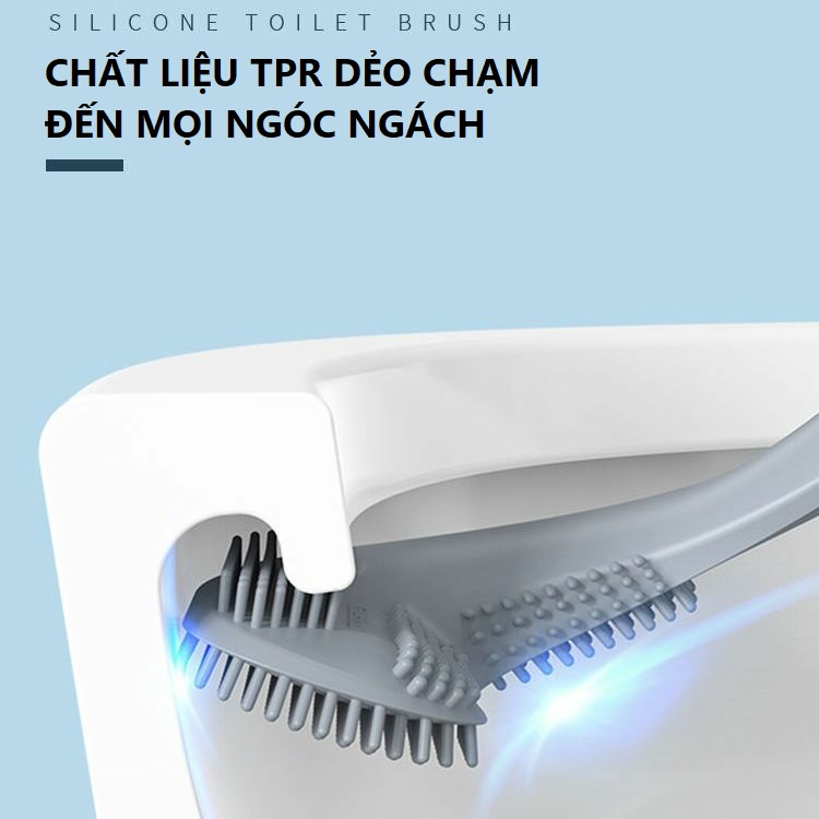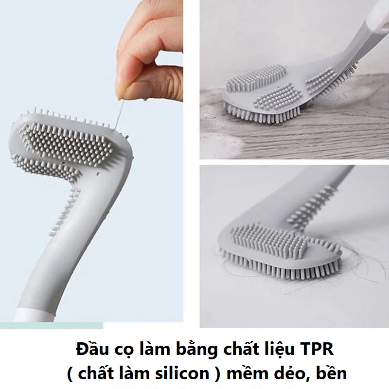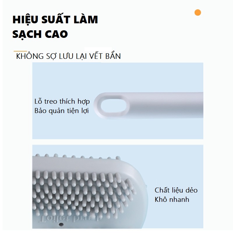 - Cọ toilet silicon được thiết kế thông minh không tích nước phía đầu chổi nên sạch sẽ, nhanh khô