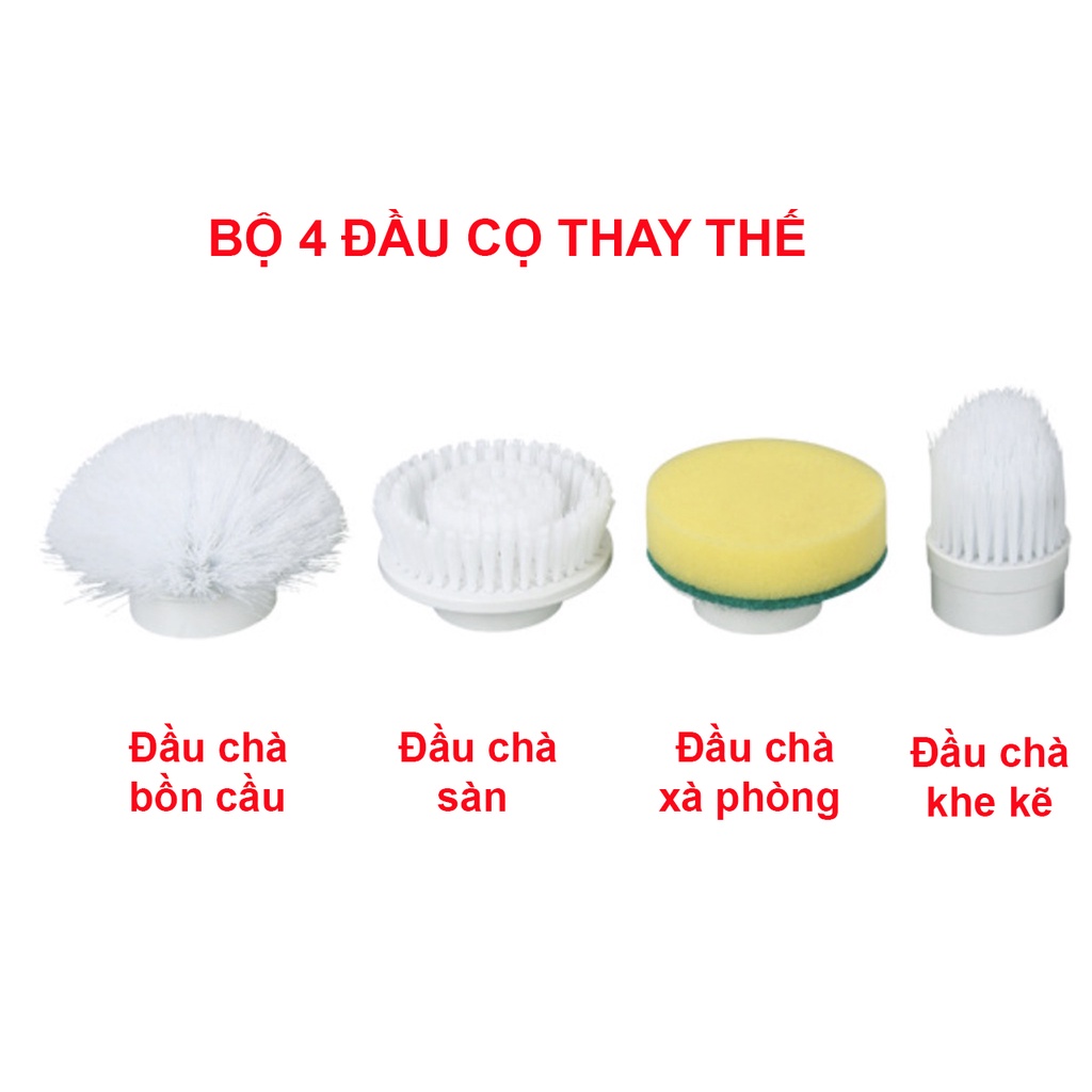 Bộ 4 đầu cọ chà sàn nhà vệ sinh- Với 4 đầu bàn chải khác nhau, bàn chải phẳng, bàn chải lông, bàn chải góc và bàn chải xốp, dễ dàng thay thế và lắp đặt để đáp ứng các nhu cầu khác nhau