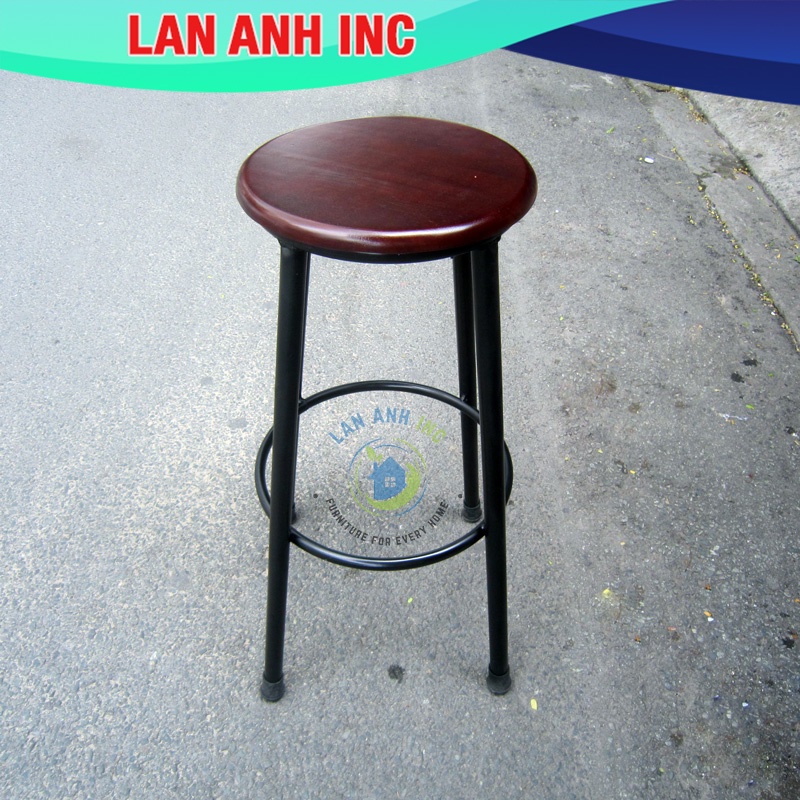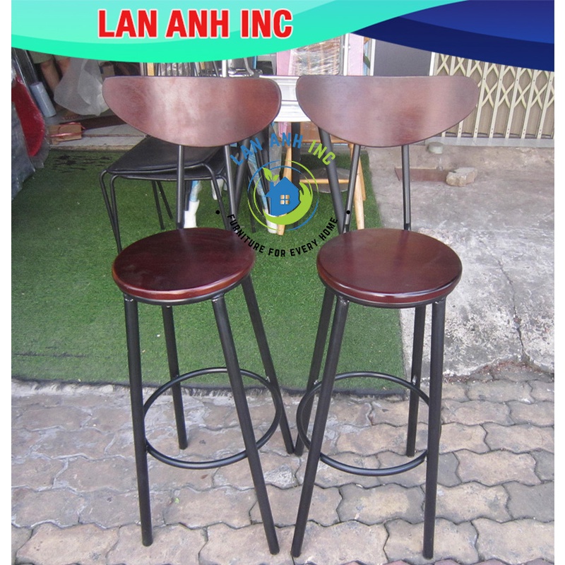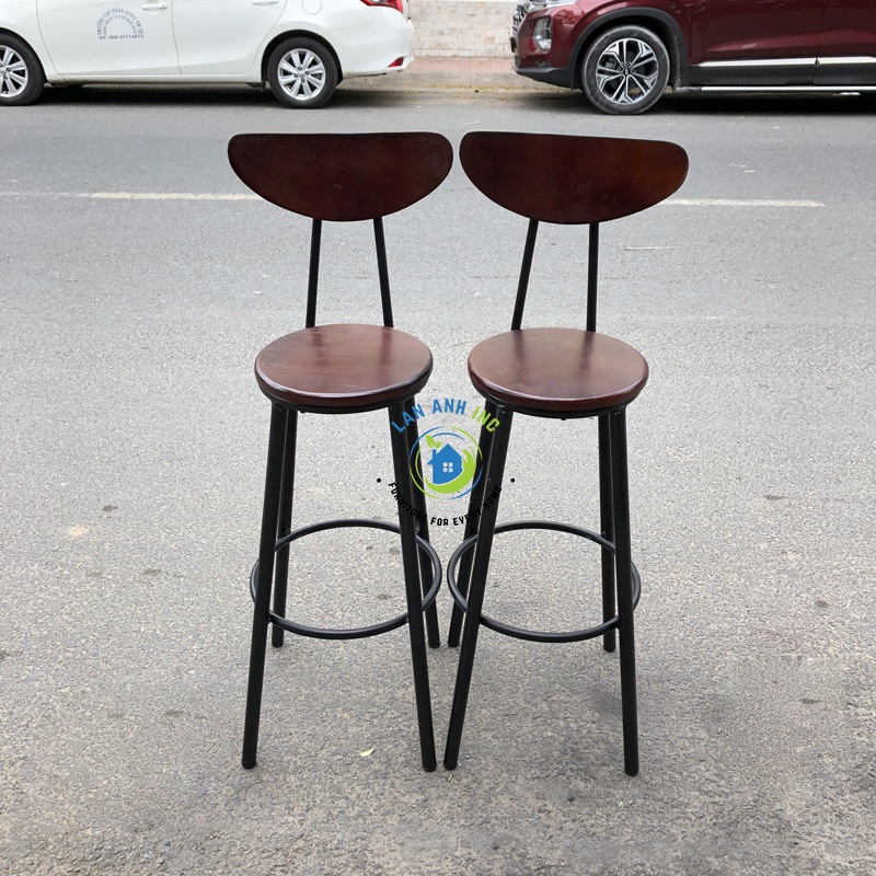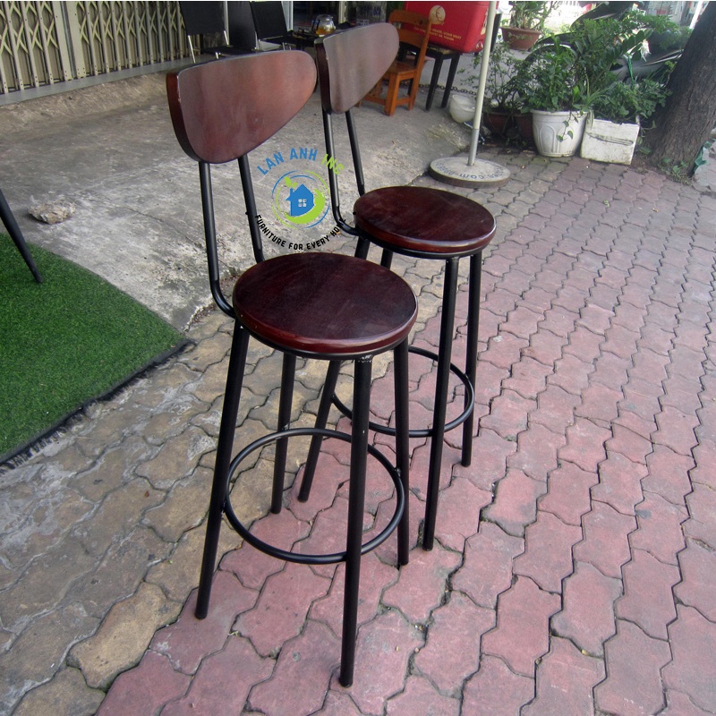 Giới thiệu Ghế cao quầy bar cafe ban công thu ngân chân sắt mặt nâu cao 75cm ( Hỏa tốc 2h)