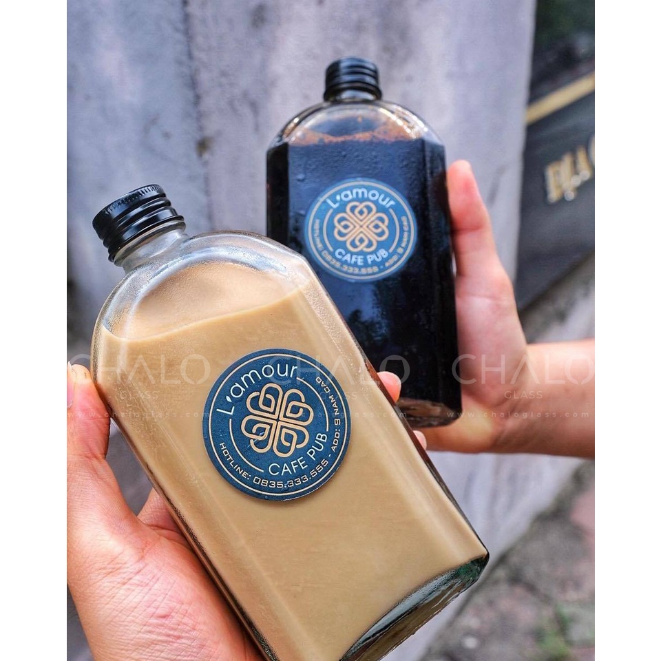 Chai thủy tinh dẹt nắp nhôm 350ml (Combo 02 chai trơn, không in hình) - CXV350