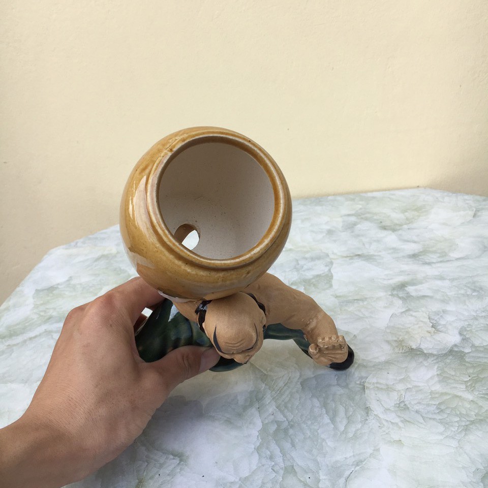 Chậu tượng Lỗ trí thâm cõng vò mini men màu xanh ngọc gốm Bát tràng 1 size CT-54