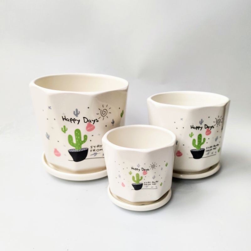 Chậu sứ trồng cây kèm đĩa lót cặp 3
