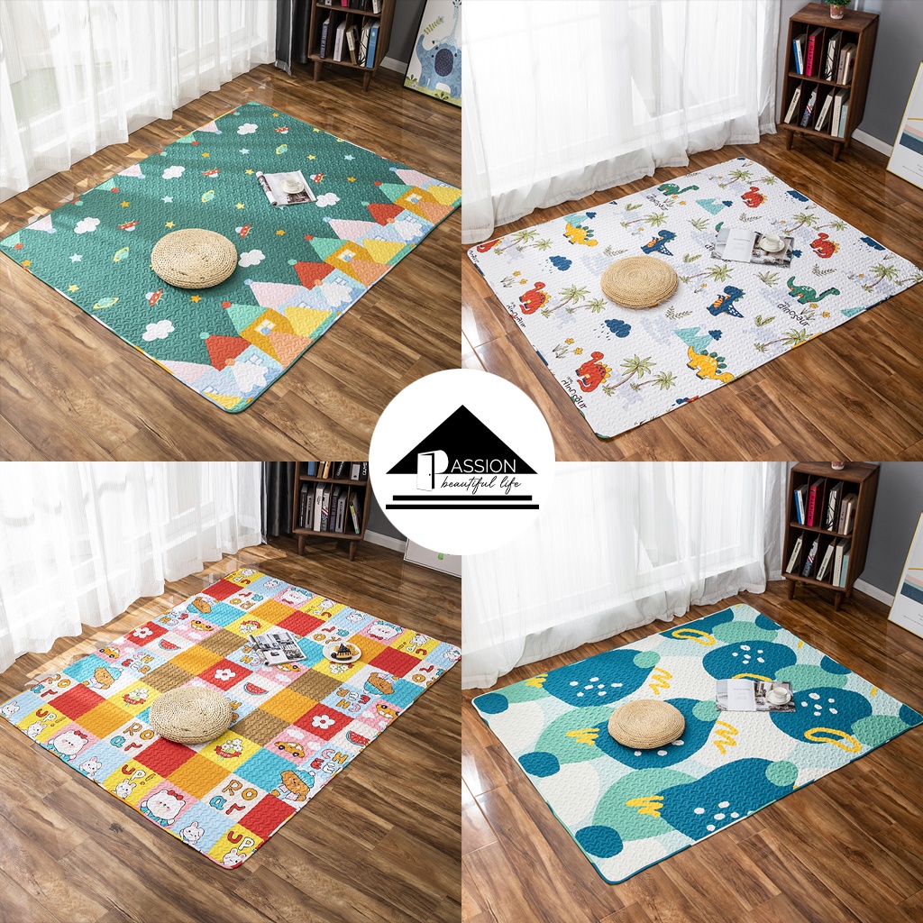 Cấu tạo Thảm gồm: Mặt trên Cotton thoáng khí; Ở giữa được chần bông đầy ắp đem lại cảm giác êm ái, dễ chịu và Đế thảm phủ cao su chống dính, giúp bạn tận hưởng mọi hoạt động vui chơi. Thích hợp để trang trí cho phòng của bé nhỏ hoặc trở thành thảm tập luyện thể thao cho các cô nàng năng động.
