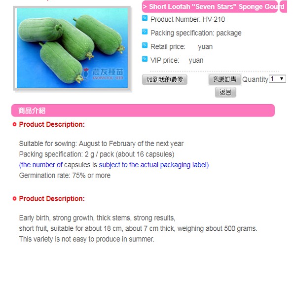 Giới thiệu [Hạt giống Đài Loan] Gói 5 hạt giống mướp ngọt Đài Loan Seven Star tỷ lệ nảy mầm 95%