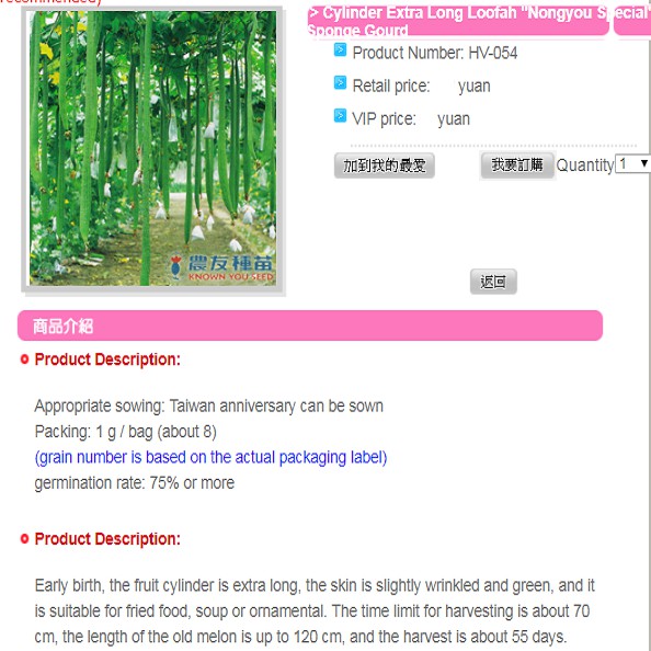 Giới thiệu [Hạt giống Đài Loan] Gói 5 hạt giống mướp ngọt siêu dài Đài Loan - tỷ lệ nảy mầm 95%