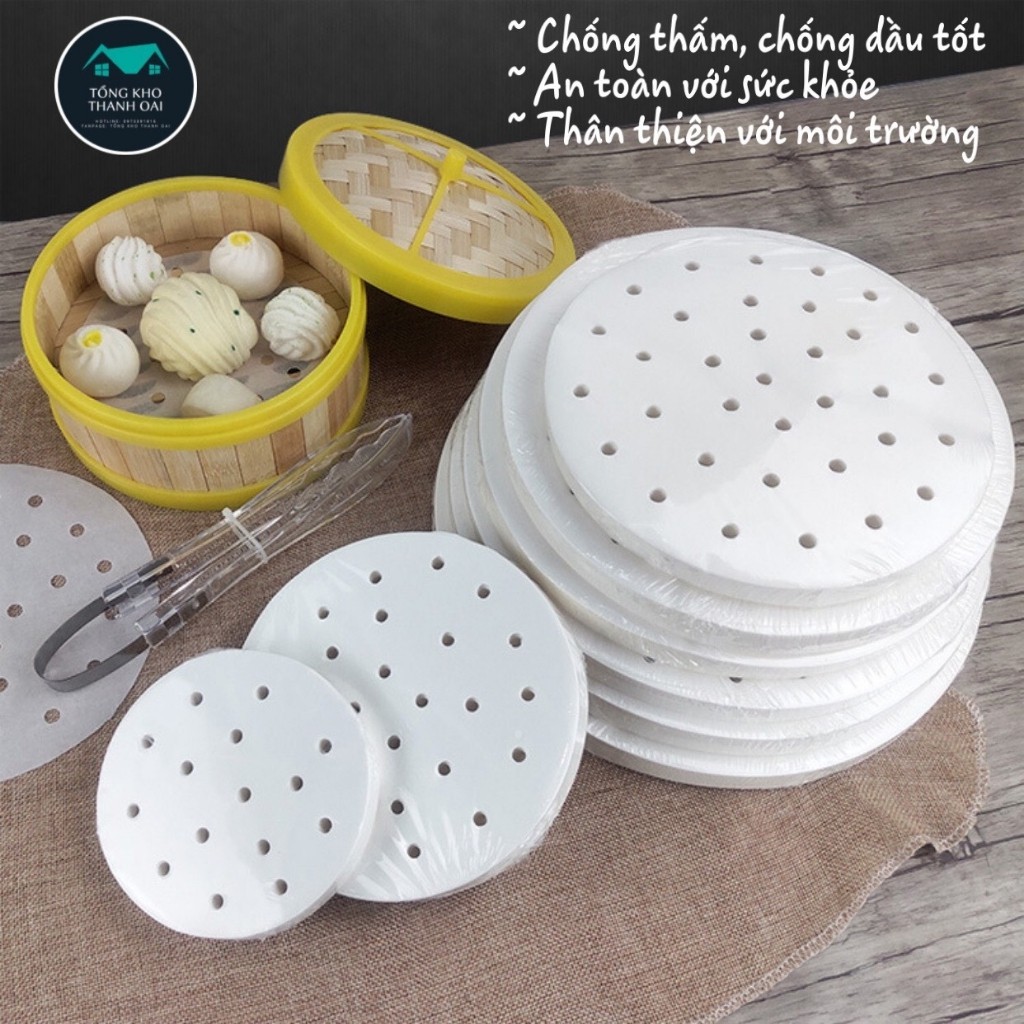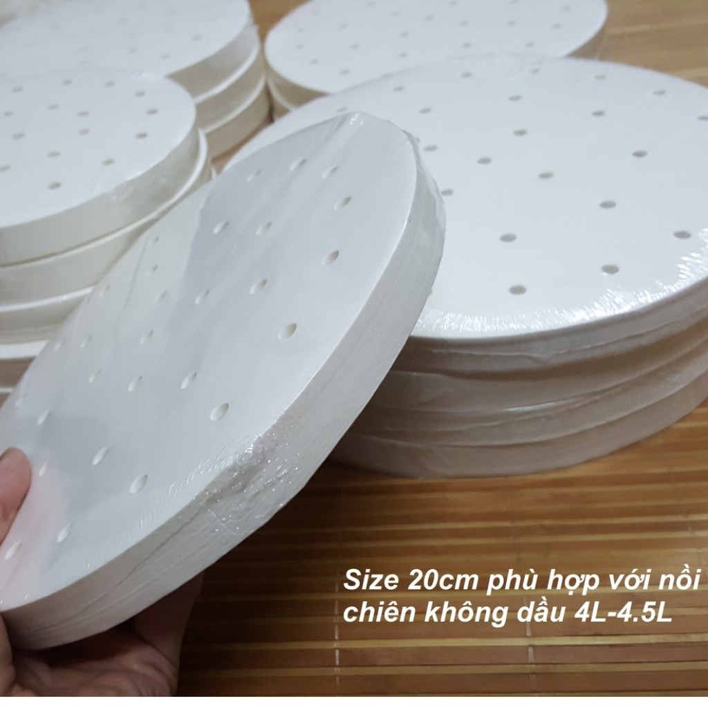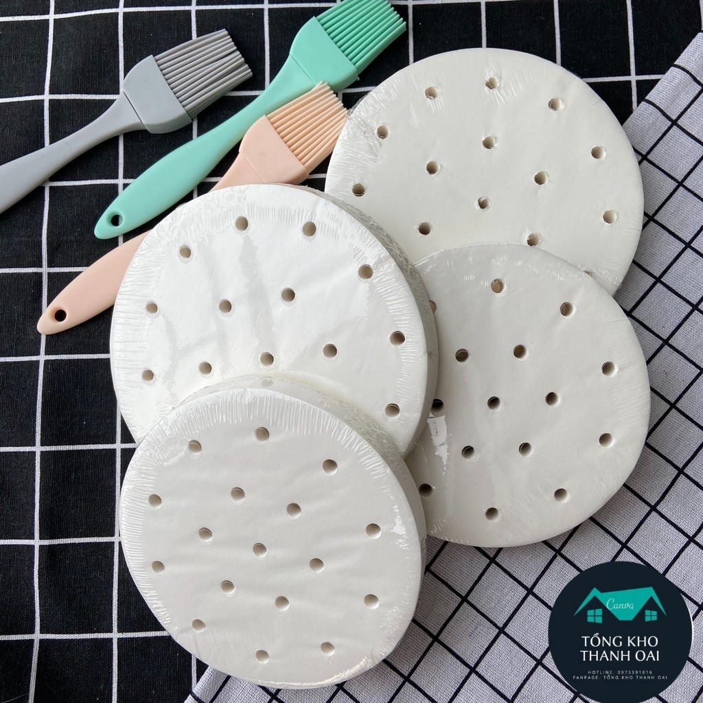 Giấy nến nướng bánh đục lỗ tròn thấm dầu chống dính cho nồi chiên không dầu 100 tờ