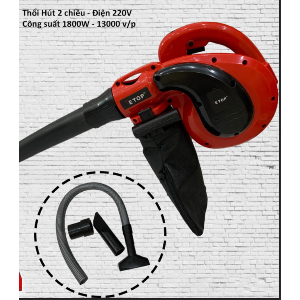 ❎Máy thổi-hút bụi hai chức năng ETOP 1800W đa năng với 2 chức năng hút và thổi tiện dụng,chỉ cần xoay đầu máy là chuyển chế độ một cách nhanh chóng.Công suất cao 1800W giúp khả năng thổi ,hút của máy cực khỏe.Máy thổi-hút bụi hai chức năng ETOP 1800W có núm chiết áp điều chỉnh tốc độ 6 cấp,tốc độ vòng quay 3000-13000v/phút tùy chỉnh theo nhu cầu công việc