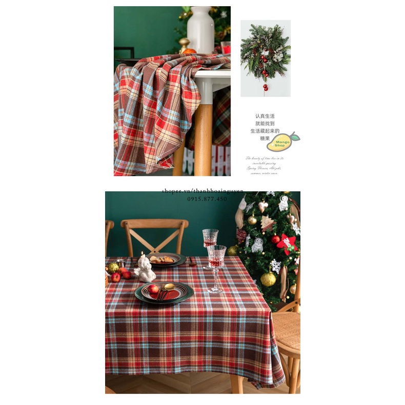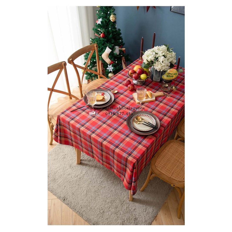 [HOT] Khăn trải bàn kẻ sọc caro ngày lễ hội giáng sinh Noel