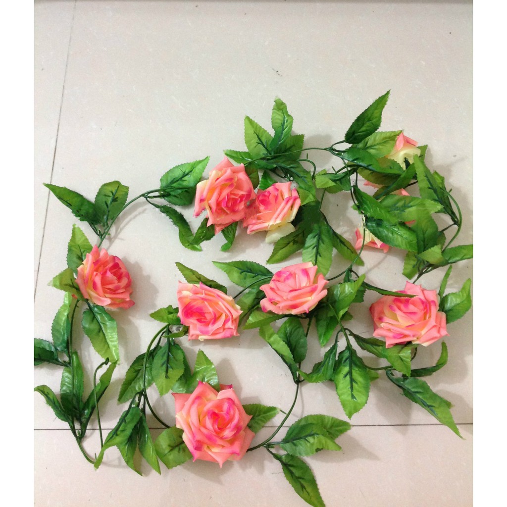 Hoa Hồng dây trang trí, hoa lụa, hoa giả chiều dài 2m4.