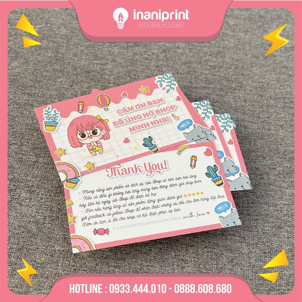 Văn Phòng Phẩm > Sổ & Giấy Các Loại > Giấy In || Card cám ơn, thiệp cám ơn, giấy cảm ơn cô gái màu hồng - 020Còn hàng