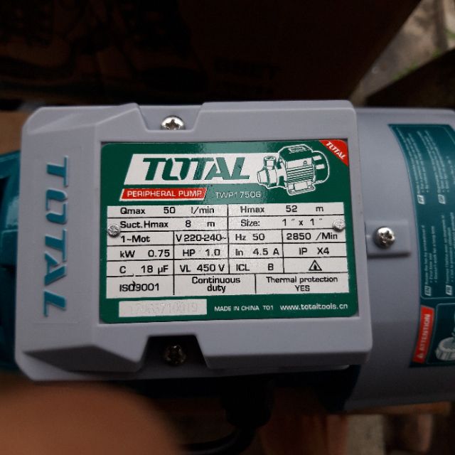 Nhà cửa & Đời sống > Dụng cụ & Thiết bị tiện ích > Máy bơm nước & phụ kiện || 750W MÁY BƠM NƯỚC 1.0HP TOTAL (TWP17506)Còn hàng