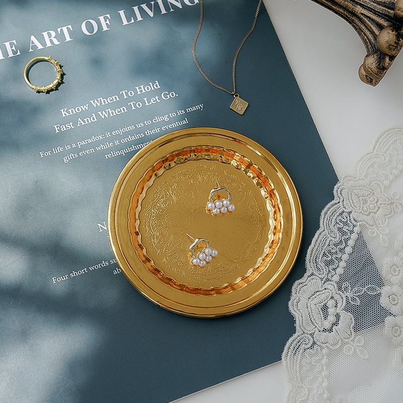 Phụ kiện chụp ảnh khay decor, đĩa để trang sức bằng thép mạ không gỉ họa tiết cổ điển