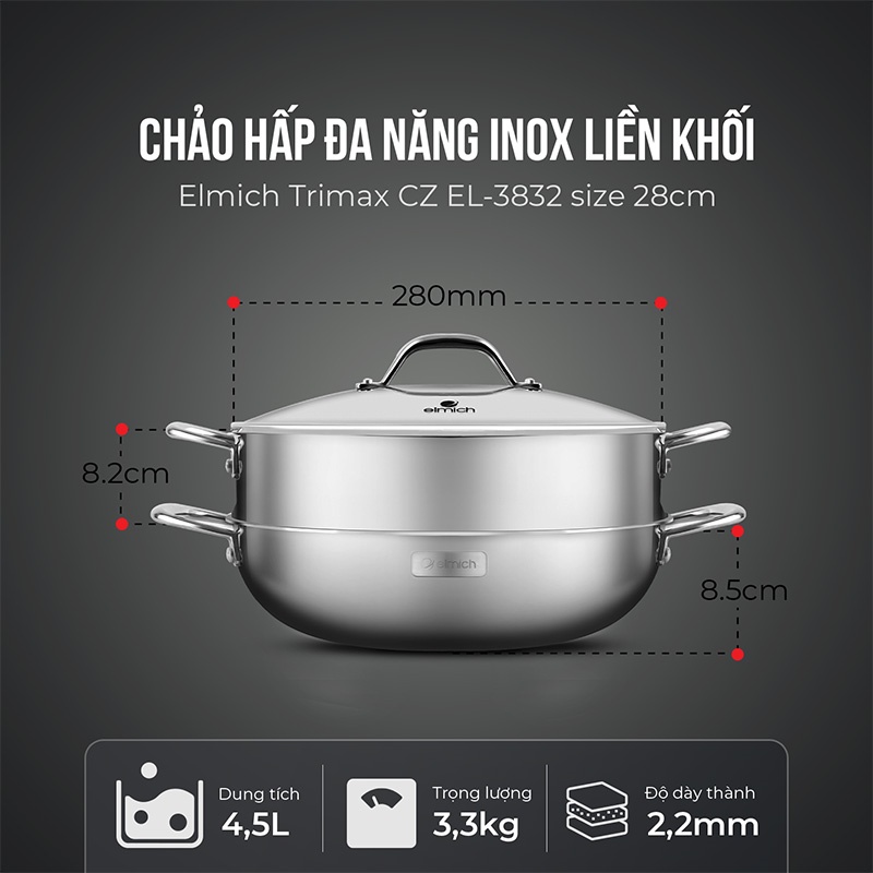Nhà cửa & Đời sống > Dụng cụ nhà bếp > Nồi || Chảo hấp đa năng inox liền khối Elmich Trimax CZ EL-3832 size 28cmCòn hàng