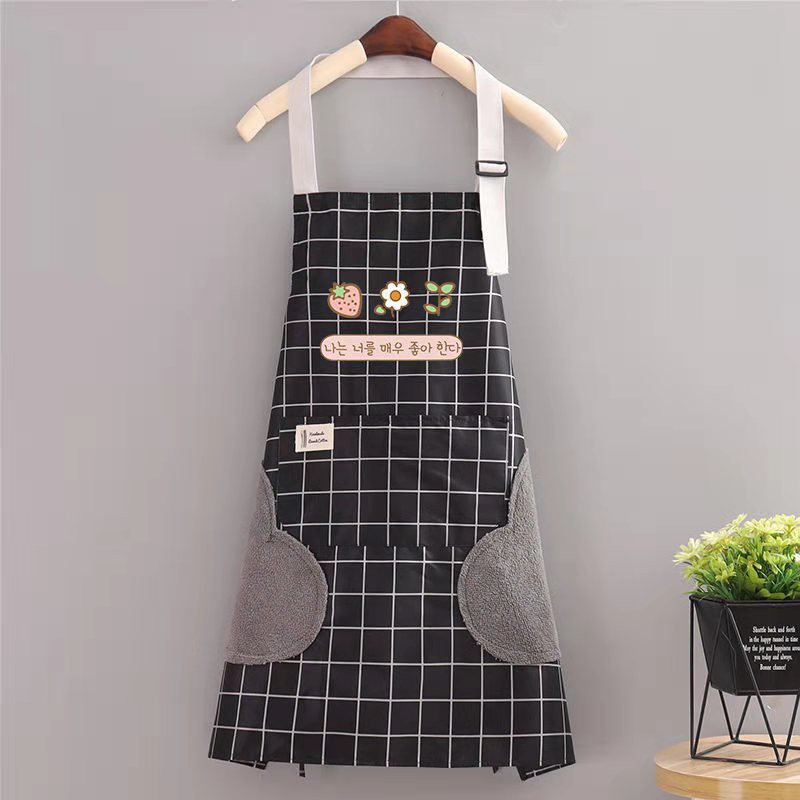 Giới thiệu Tạp dề caro nhà bếp không thấm nước có thể điều chỉnh eo kiểu dáng Hàn Quốc
