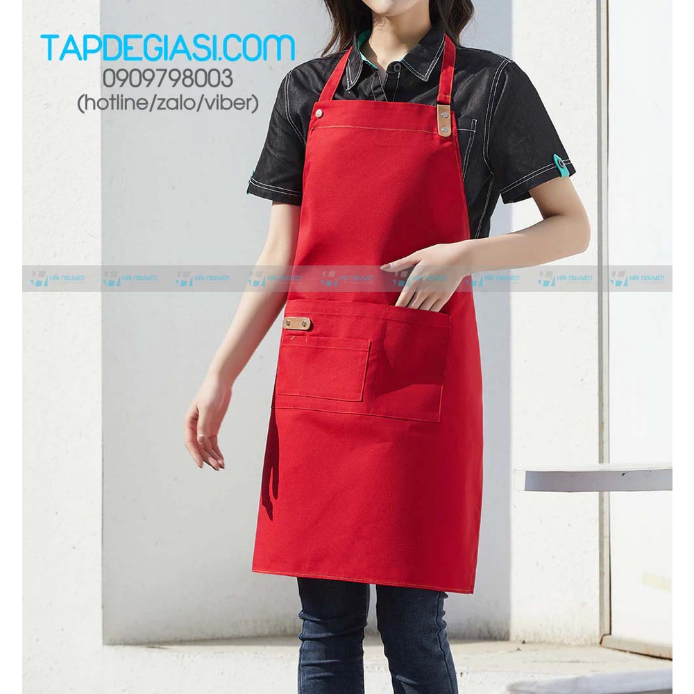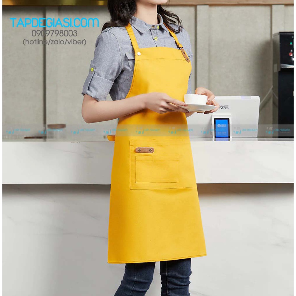 - Size: free size Nam Nữ đều sử dụng được vì đối với tạp dề yếm trên cổ có tăng đơ để tăng giảm độ dài tạp dề.