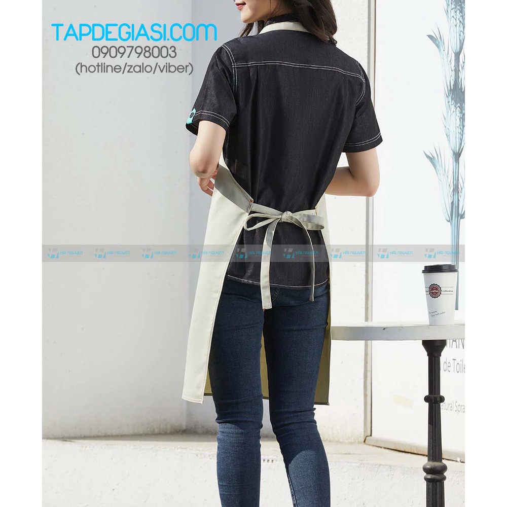 - Tạp dề có 1 túi rất tiện dụng để đựng sổ ghi chép, sổ order, điện thoại, ipad…