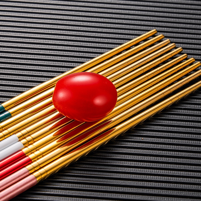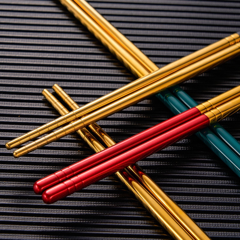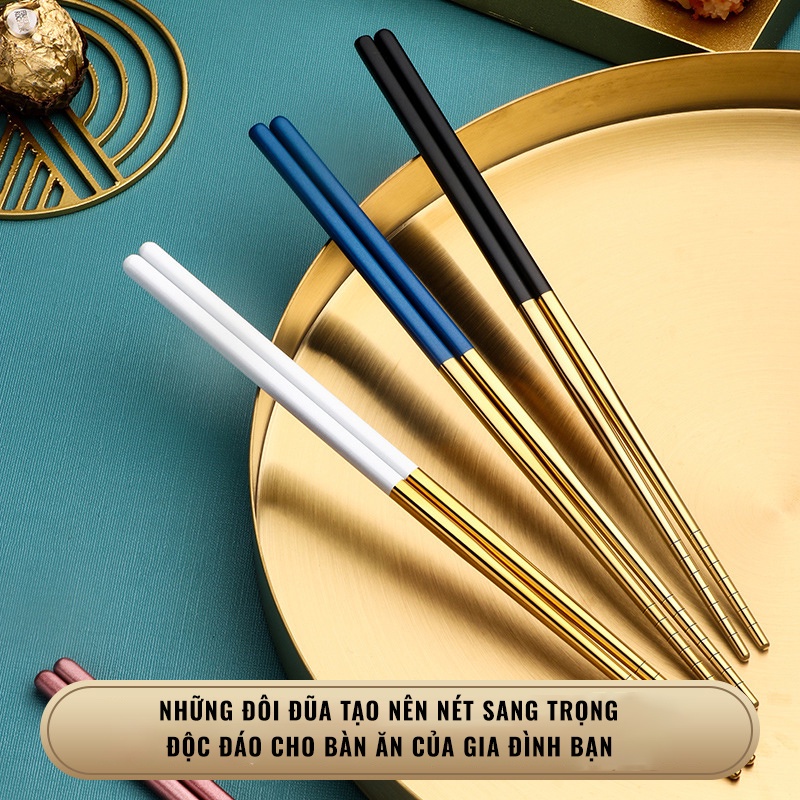 Đũa Inox Mạ Vàng Cao Cấp Chống Trơn Trượt Phong Cách Hàn Quốc DU001