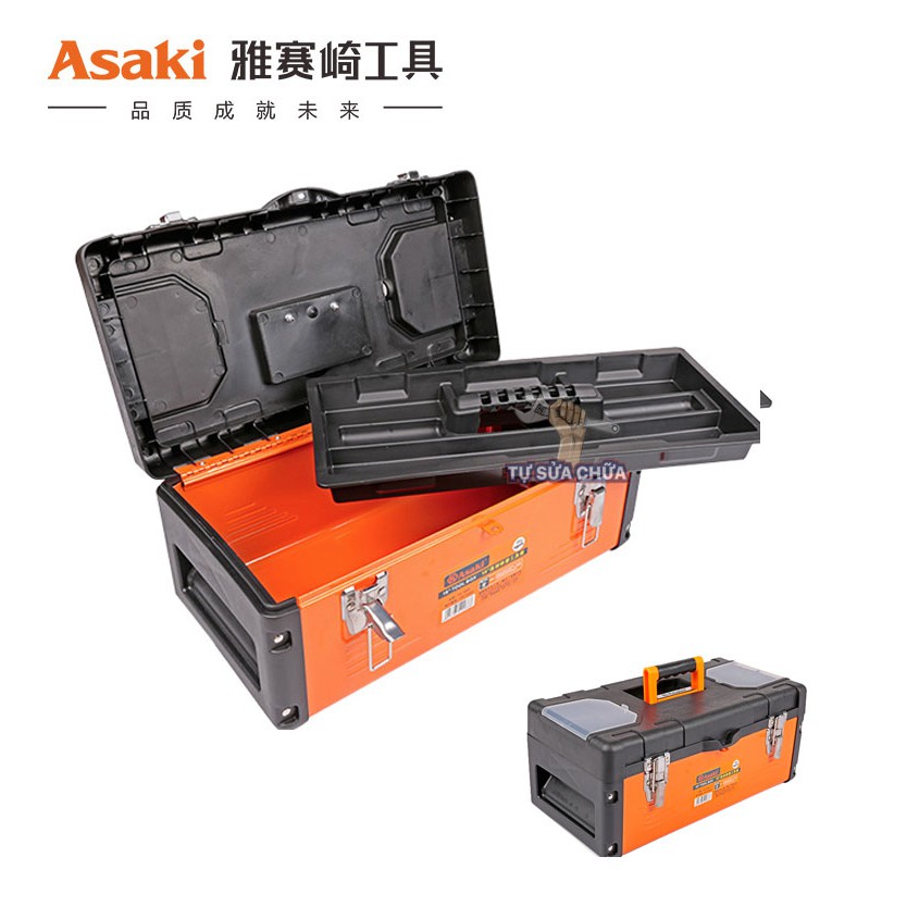 Nhà cửa & Đời sống > Dụng cụ & Thiết bị tiện ích > Dụng cụ > Hộp dụng cụ cầm tay || Thùng đựng đồ nghề đế sắt cao cấp chính hãng Asaki siêu bền, 2 ngăn khóa kim loạiCòn hàng