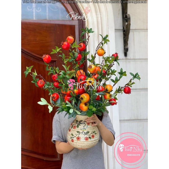 Giới thiệu Cành Lựu Phú Quý 6 - 7 Quả Trang Trí Decor Nhà Cửa - HOA GIẢ CAO CẤP.