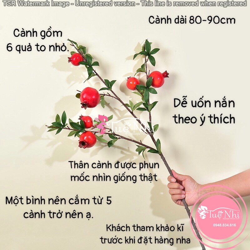 - Thân cành chắc chắn, phun mốc giống y như cành quả lựu thật. Dễ uốn nắn theo ý thích.