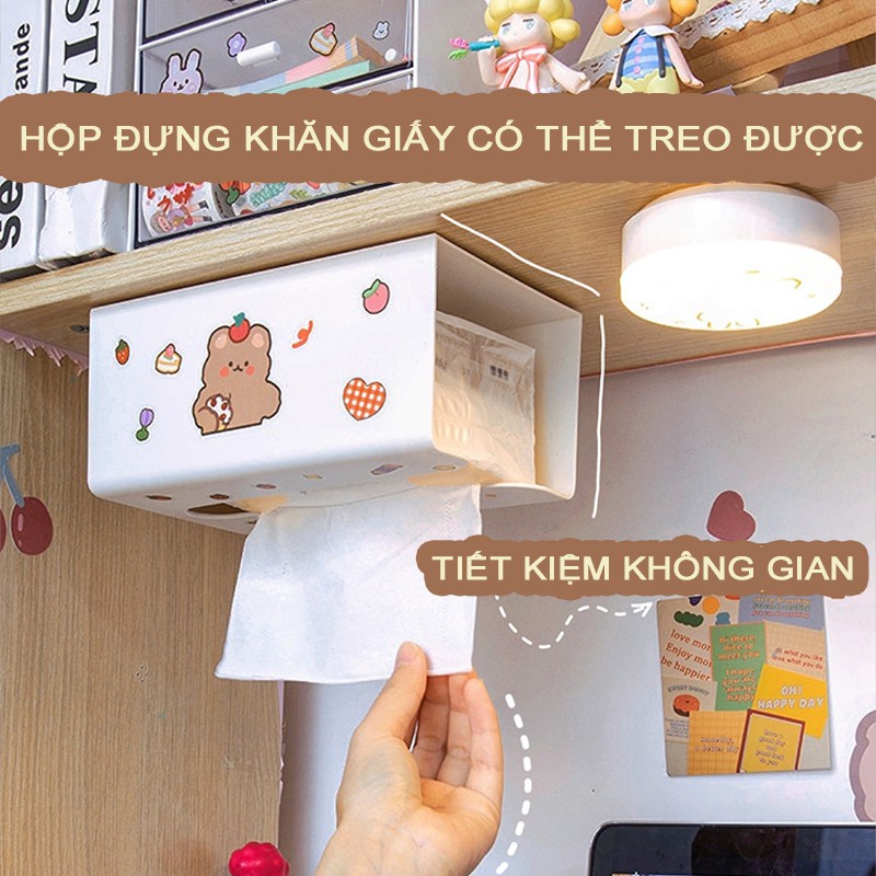 • Loại: Hộp khăn giấy treo gầm bàn, treo tường, dán tủ bếp, dán nhà vệ sinh....