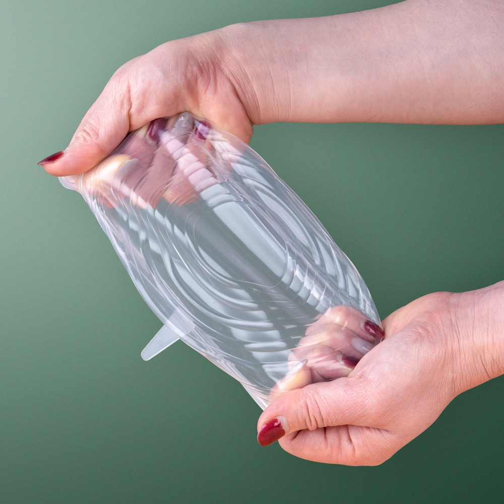 - Chất liệu silicon cho phép chiếc nắp đậy này dễ dàng bám chặt vào bề mặt cần bao bọc, bất kể là hộp bát thủy tinh, nhựa, sứ hay vỏ trái cây tươi như cam, dưa hấu.