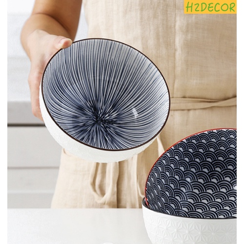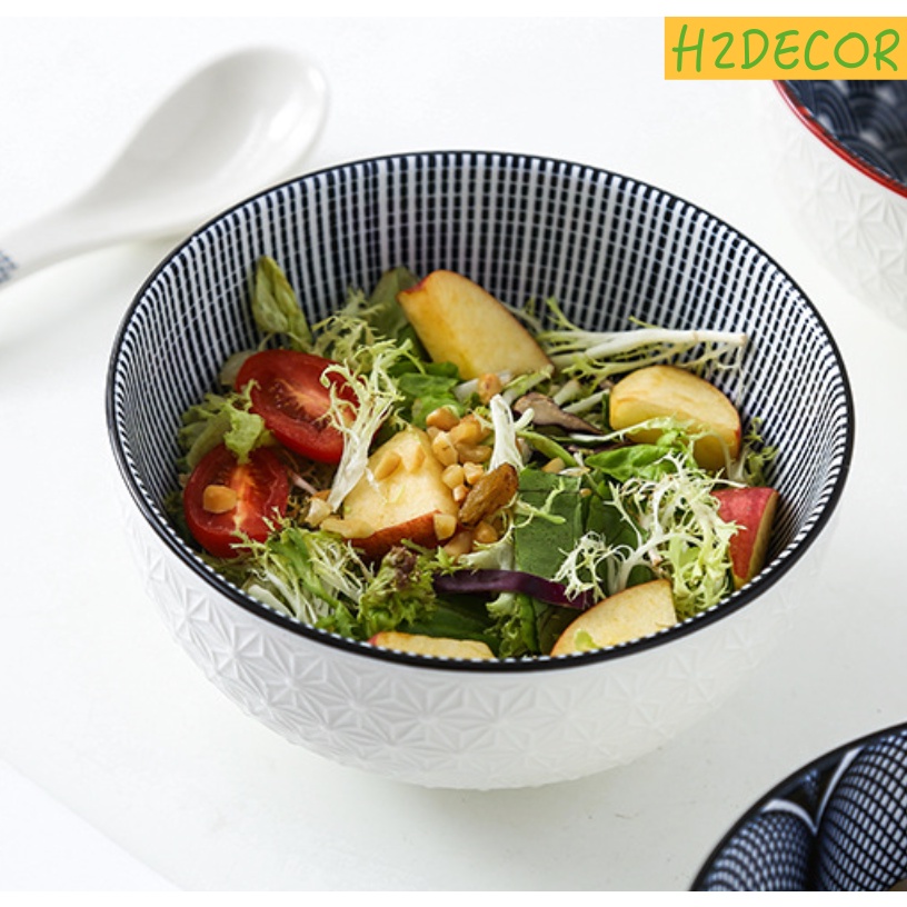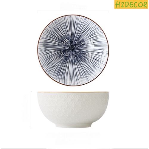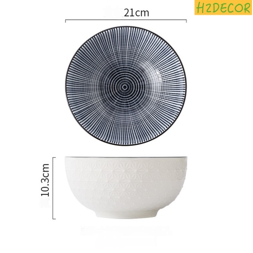 Giới thiệu Bát tô hoạ tiết sọc xanh tráng men cao cấp, hoa văn dập nổi size 21cm- H2decor