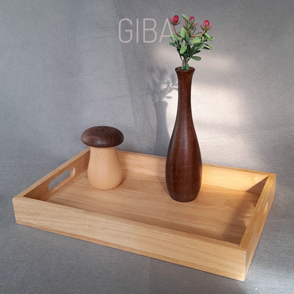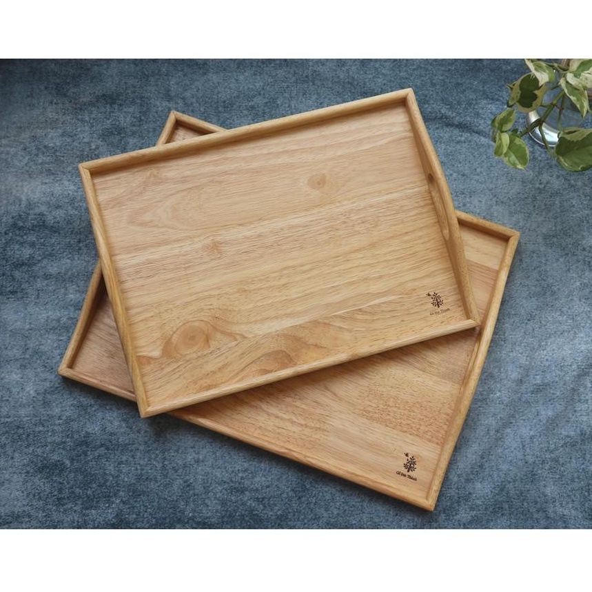 Khay gỗ đựng đồ ăn có tay cầm - GIBA1. Chất liệu: gỗ cao su.
