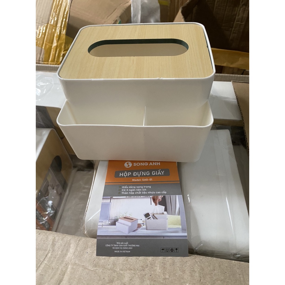 Nhà cửa & Đời sống > Sắp xếp nhà cửa > Hộp khăn giấy || Hộp Đựng Giấy Ăn Để Bàn Có Ngăn Để Đồ Đa Năng, Hộp Khăn Giấy Nắp GỗCòn hàng