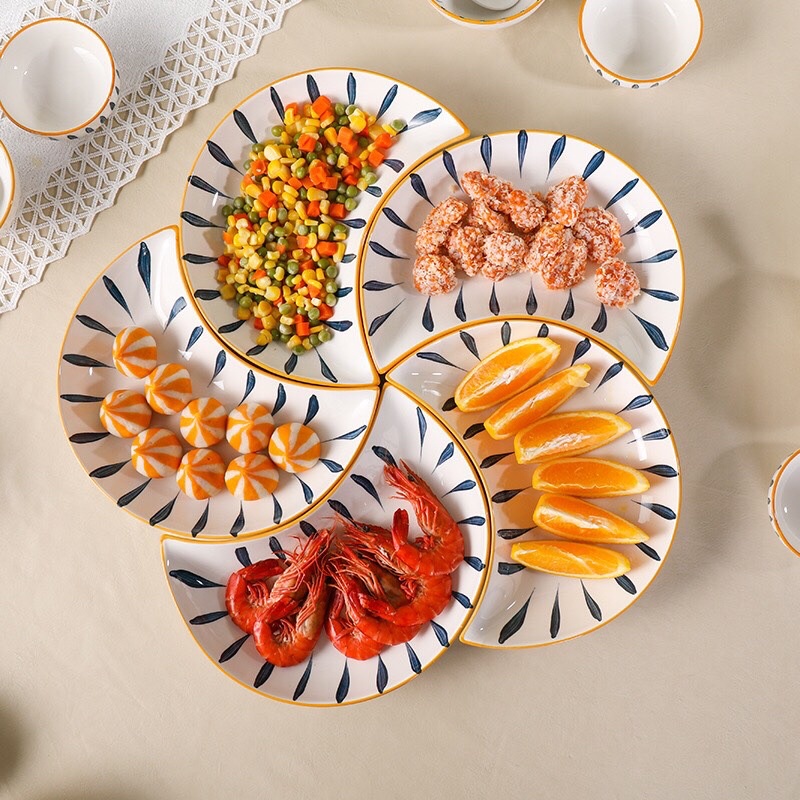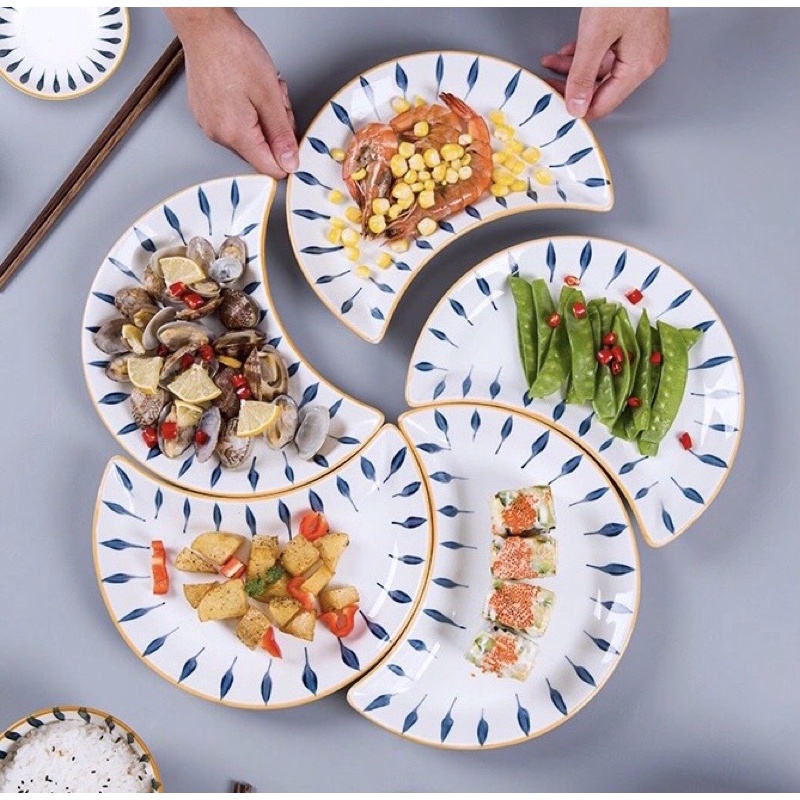 Nhà cửa & Đời sống > Bộ đồ bàn ăn > Dĩa || Bộ bát đĩa decor gốm sứ siêu đẹp sét mặt trăng 5 cánhCòn hàng