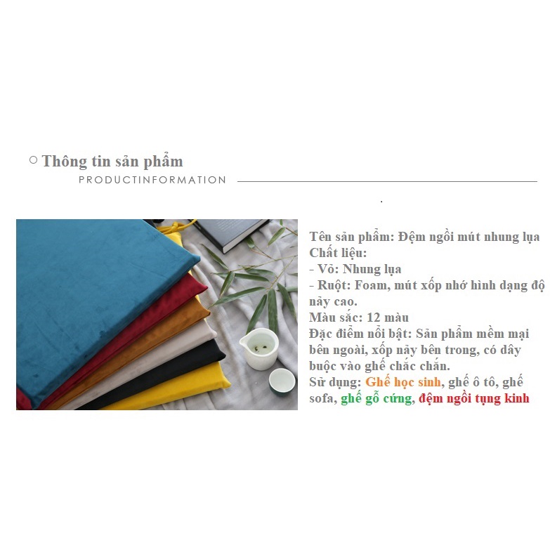Nhà cửa & Đời sống > Nội thất > Đệm ngồi || Đệm lót ghế ngồi chất liệu vải nhung cao cấp mút xốp độ nảy caoCòn hàng