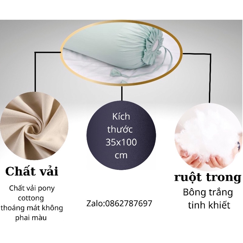 Vỏ gối ôm35x100 vỏ gối, bao gối ôm cotton poly đơn giản kèm ruột gối nặng 1,2kg