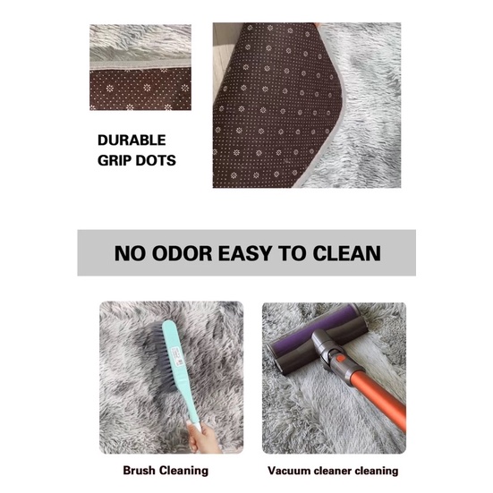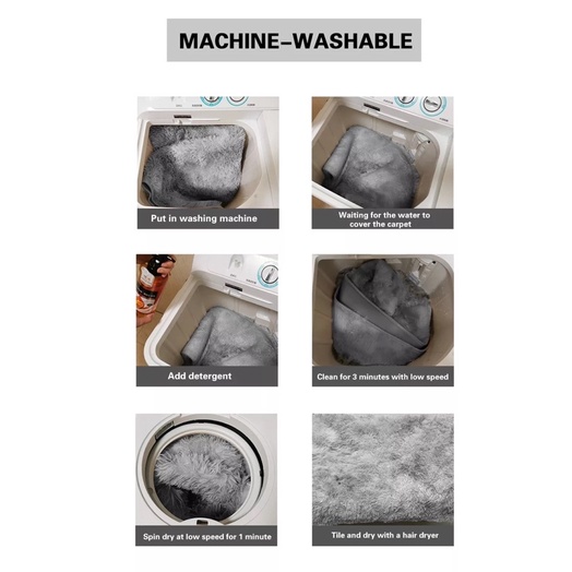Vệ sinh thảm chỉ cần dùng cây lăn bụi, máy hút bụi ... Lúc giặt thảm chỉ cần cuộn vào và bỏ vào máy giặt.Mau khô và không bay màu.