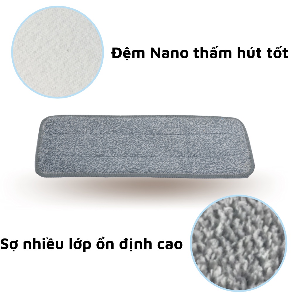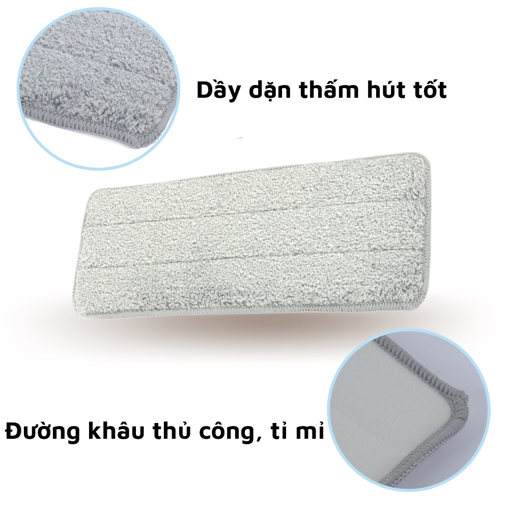Cây lau nhà và bông lau hình chữ nhật là vật dụng không thể thiếu trong gia đình bạn. Sản phẩm như “người bạn đắc lực” giúp bạn giải quyết nhanh chóng, sáng bóng sàn nhà, sạch không tì vết. Bông được làm từ chất liệu vải vi sợi Microfiber hút bẩn cực mạnh, hút ẩm tốt, độ bền cao, có thể tháo lắp dễ dàng, giặt máy cực tiện lợi.