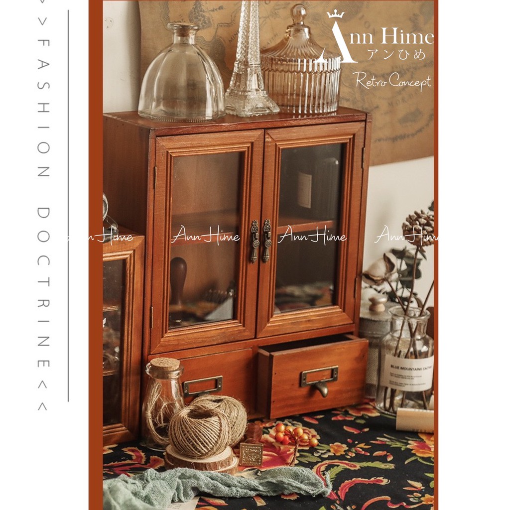 Tủ Gỗ Mini Nhỏ Để Bàn Vintage Retro Đựng Đồ Decor Tiện Dụng AnnHime SP10