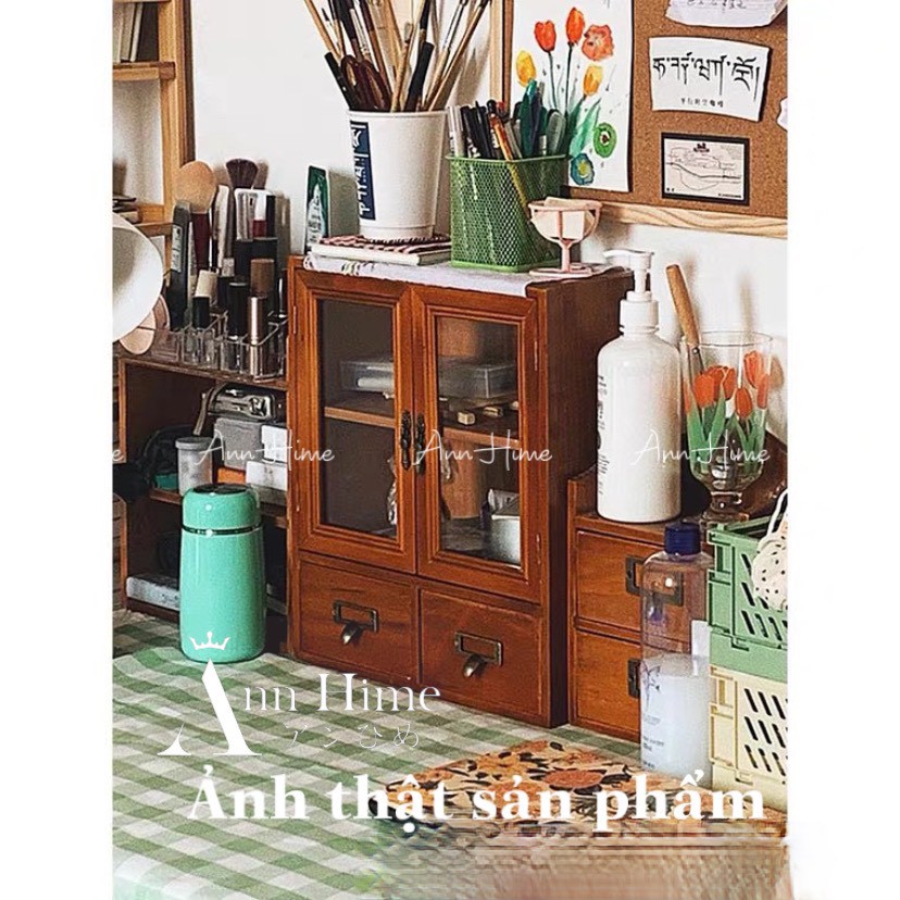 Nhà cửa & Đời sống > Nội thất > Kệ & Giá || Tủ Gỗ Mini Nhỏ Để Bàn Vintage Retro Đựng Đồ Decor Tiện Dụng AnnHime SP10Còn hàng