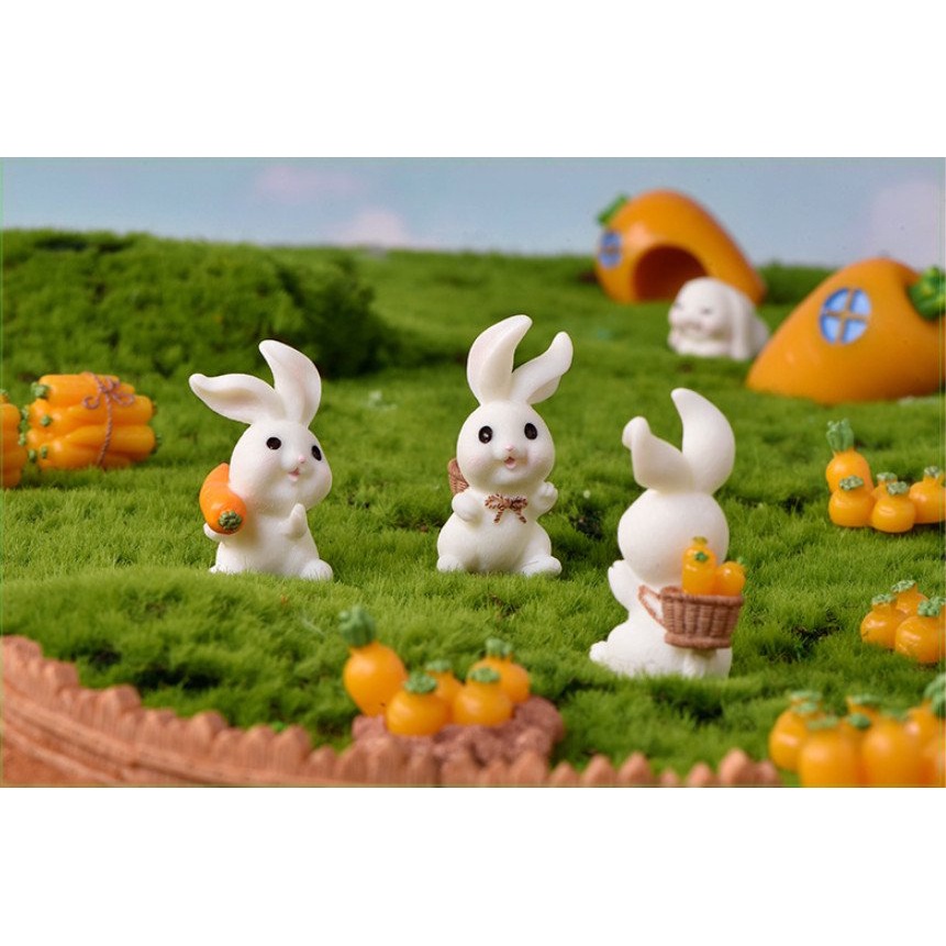 Decor bàn học gia đình thỏ chăm sóc nông trại cà rốt trang trí tiểu cảnh, terrariumsize như hình