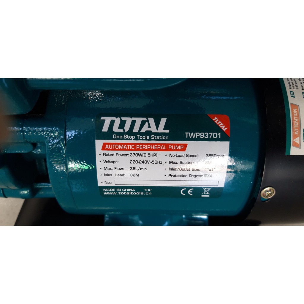 MÁY BƠM NƯỚC TOTAL (MODEL:TWP93701)Điện thế: 220-240V~50Hz