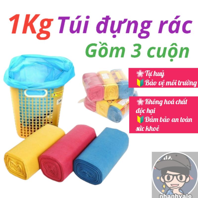 Túi đựng rác 1KG 3 cuộn 3 màu An toàn sức khoẻ ♻️Bảo vệ môi trường