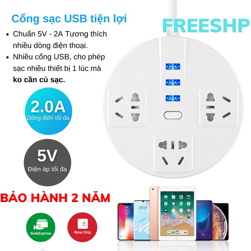 ✅ ƯU ĐIỂM:✔ Ổ Cắm USB chuẩn sạc nhanh 5V-2A cho phép sạc nhiều thiết bị 1 lúc mà ko cần củ sạc.