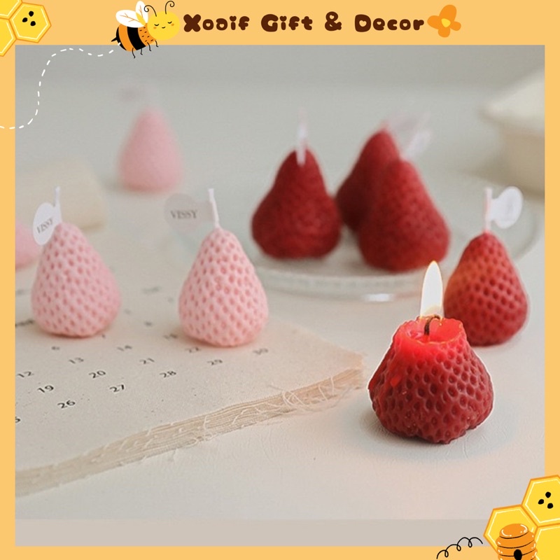 Set 4 nến thơm hình quả dâu tây decor phòng, hương thơm thư giãn - Xoaif.giftdecor