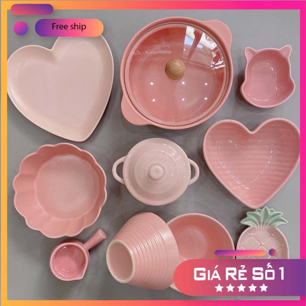 Nhà cửa & Đời sống > Bộ đồ bàn ăn > Dĩa || Chén Sứ Bát Ăn Cơm Bộ Bát Đĩa Decor Chén Dĩa Sứ Mầu Hồng Dễ Thương Cute Cao Cấp S102Còn hàng