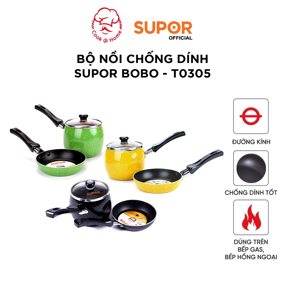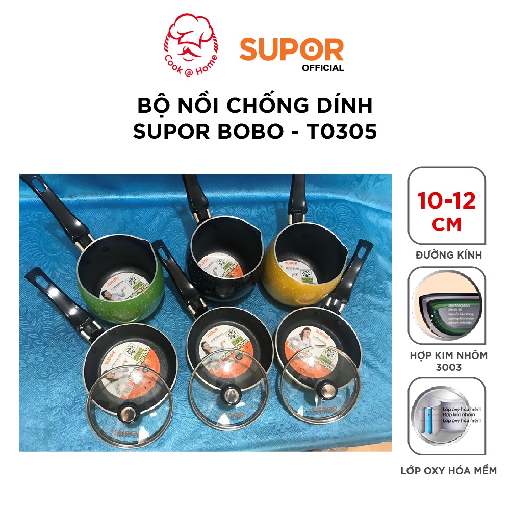 Nhà cửa & Đời sống > Dụng cụ nhà bếp > Nồi || Bộ nồi chống dính Supor Bobo mini T0305Còn hàng