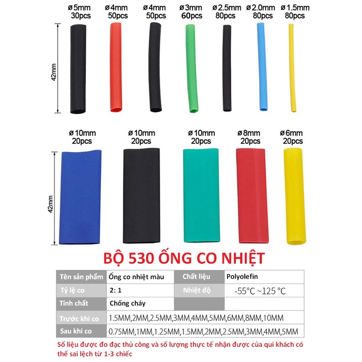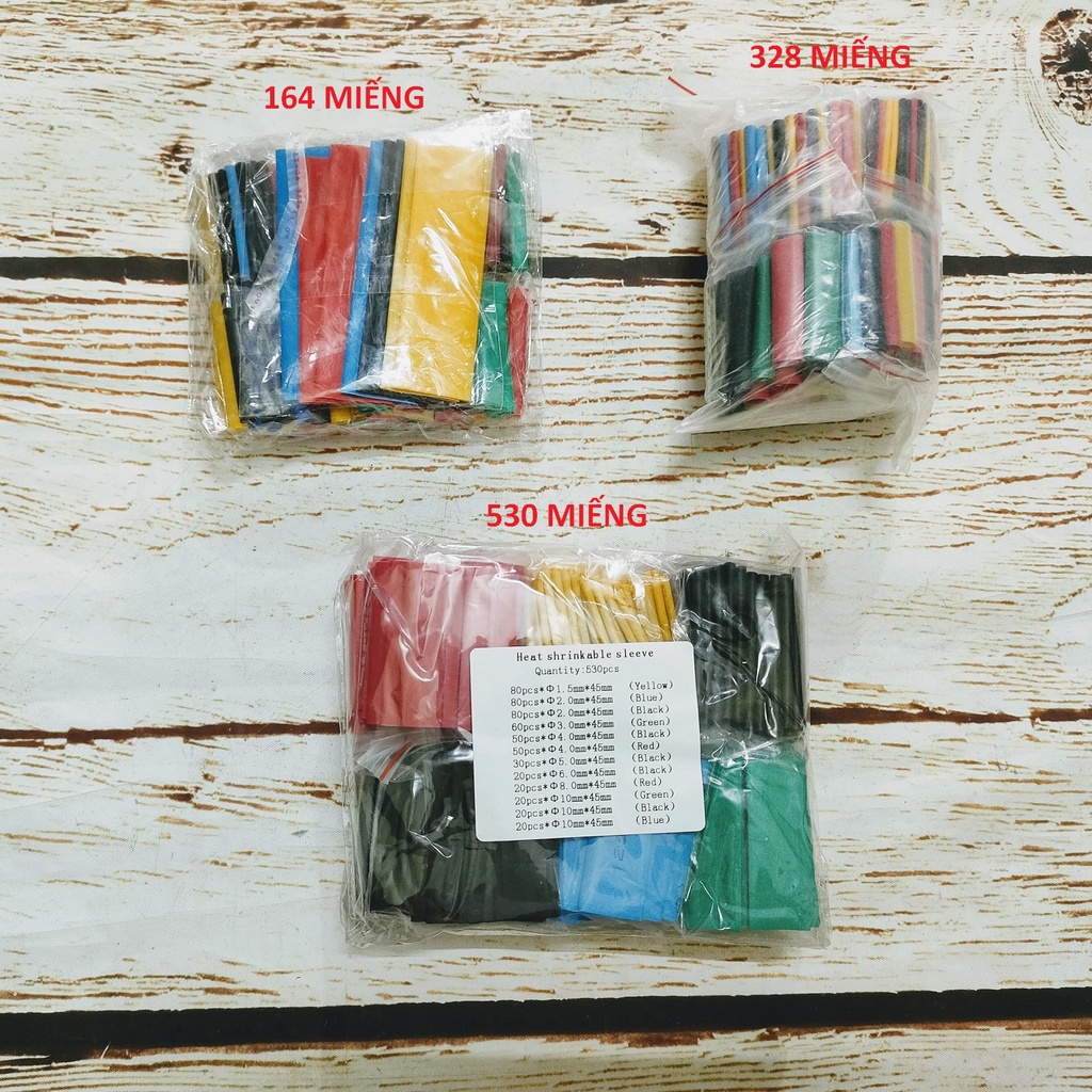 SV Bộ 164 / 328 / 530 ống ghen co nhiệt cách điện nhiều màu sắc đủ sizeMàu sắc : Nhiều màu