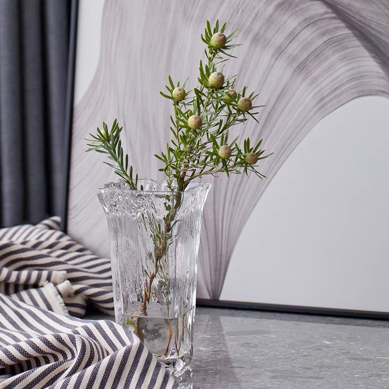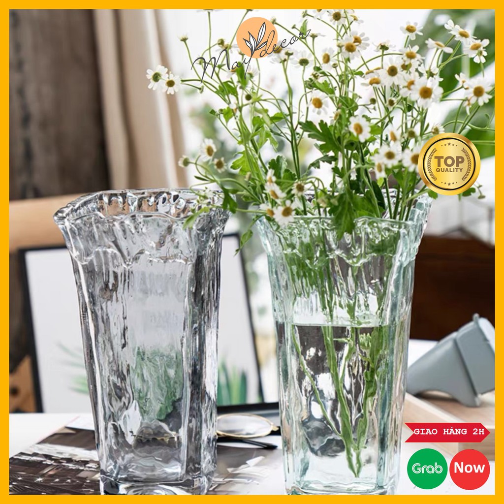 Bình thủy tinh miệng rộng sóng nước Maydecor lọ hoa thuỷ tinh cao cấp trang trí nhà