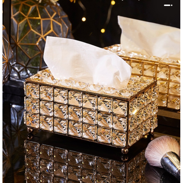 Nhà cửa & Đời sống > Sắp xếp nhà cửa > Hộp khăn giấy || Hộp đựng giấy đính đá pha lê lấp lánh phong cách Bắc Âu sang trọng hàng có sẵnCòn hàng