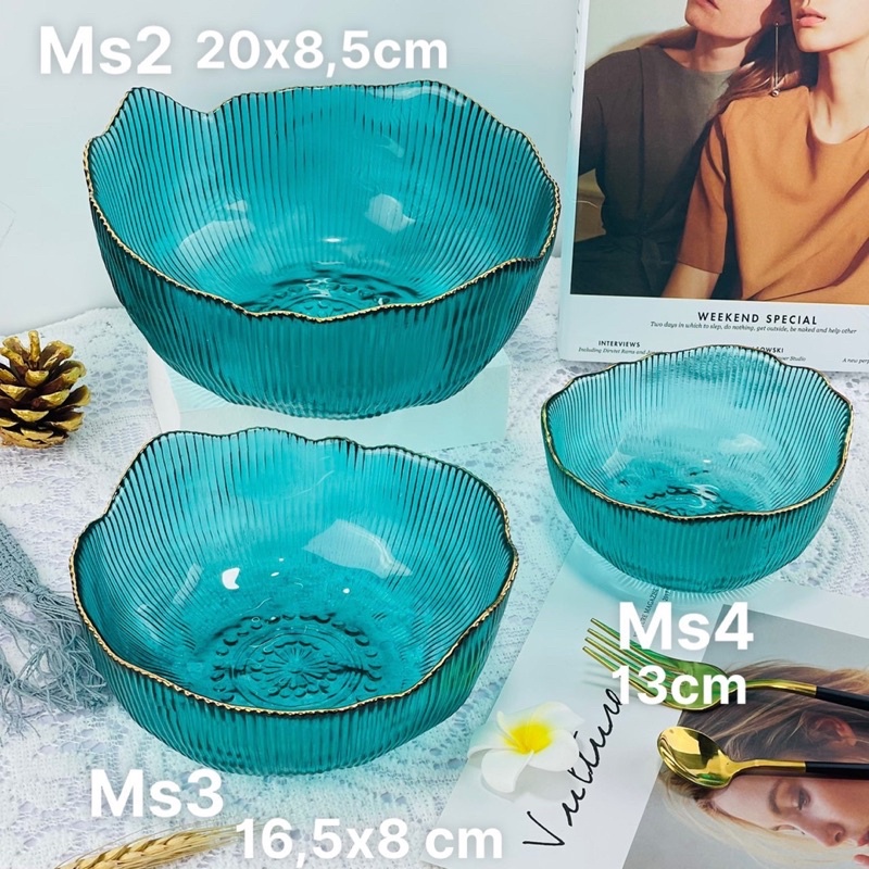Nhà cửa & Đời sống > Bộ đồ bàn ăn > Tô || Bộ bát đĩa,chén dĩa ăn cơm,Bộ đồ ăn Thủy tinh viền vàng Màu xanh decor cao cấpCòn hàng